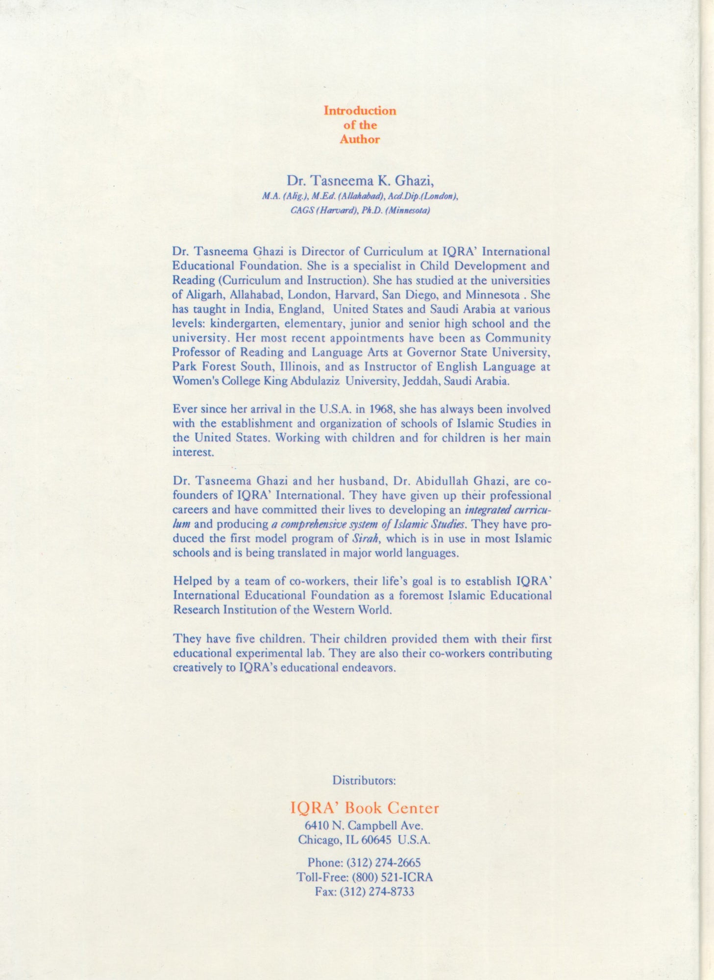Publisher: Iqra' Publications