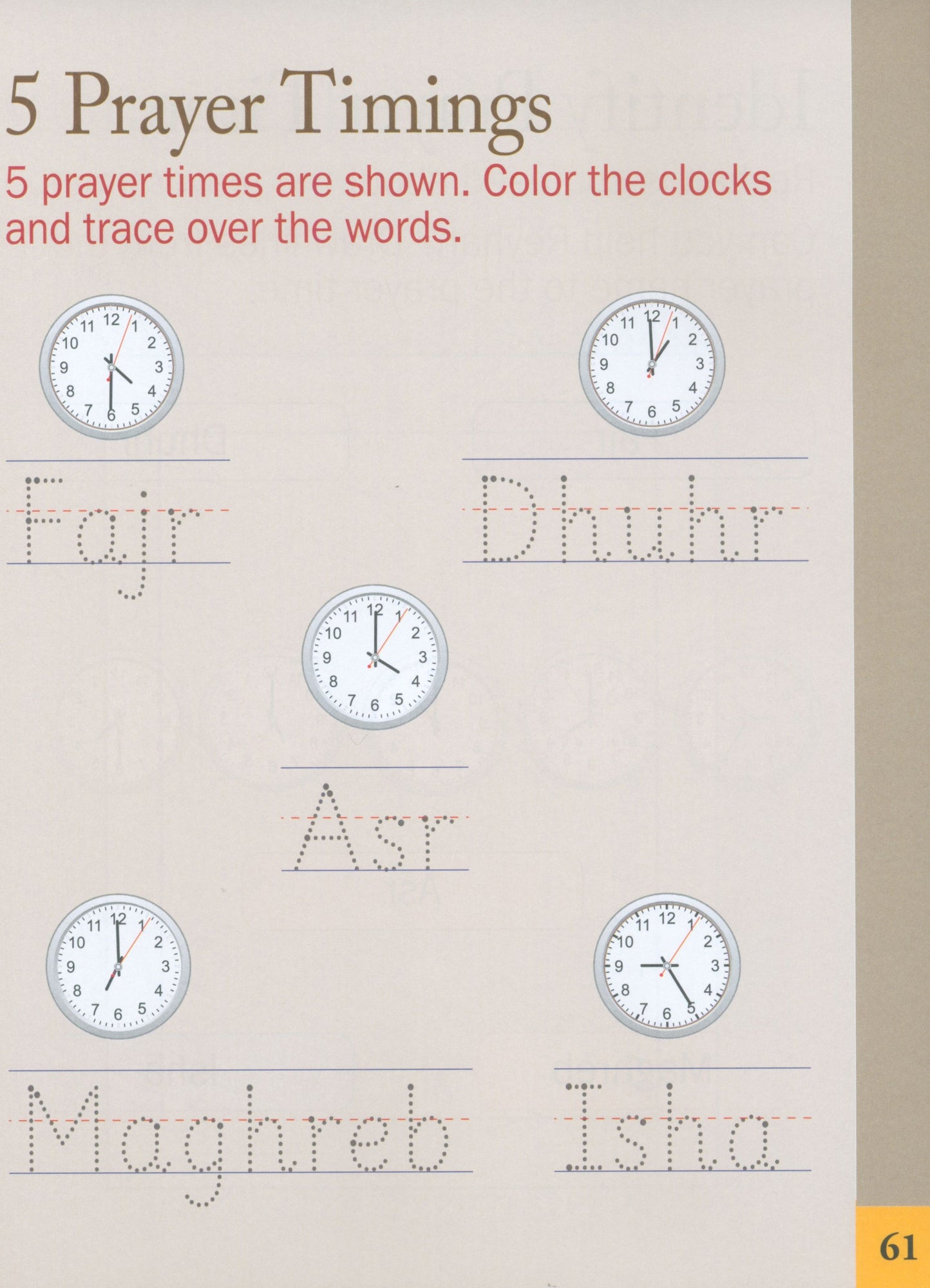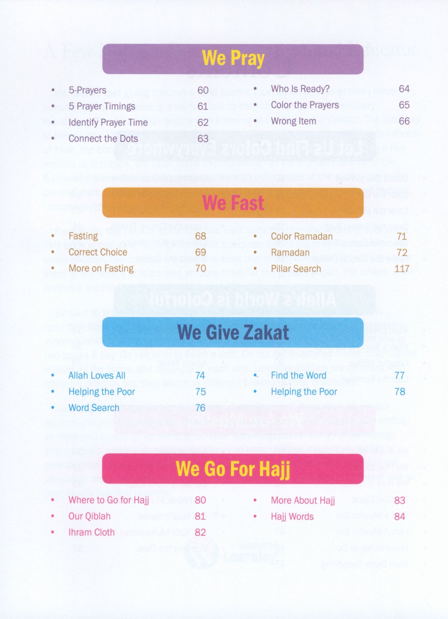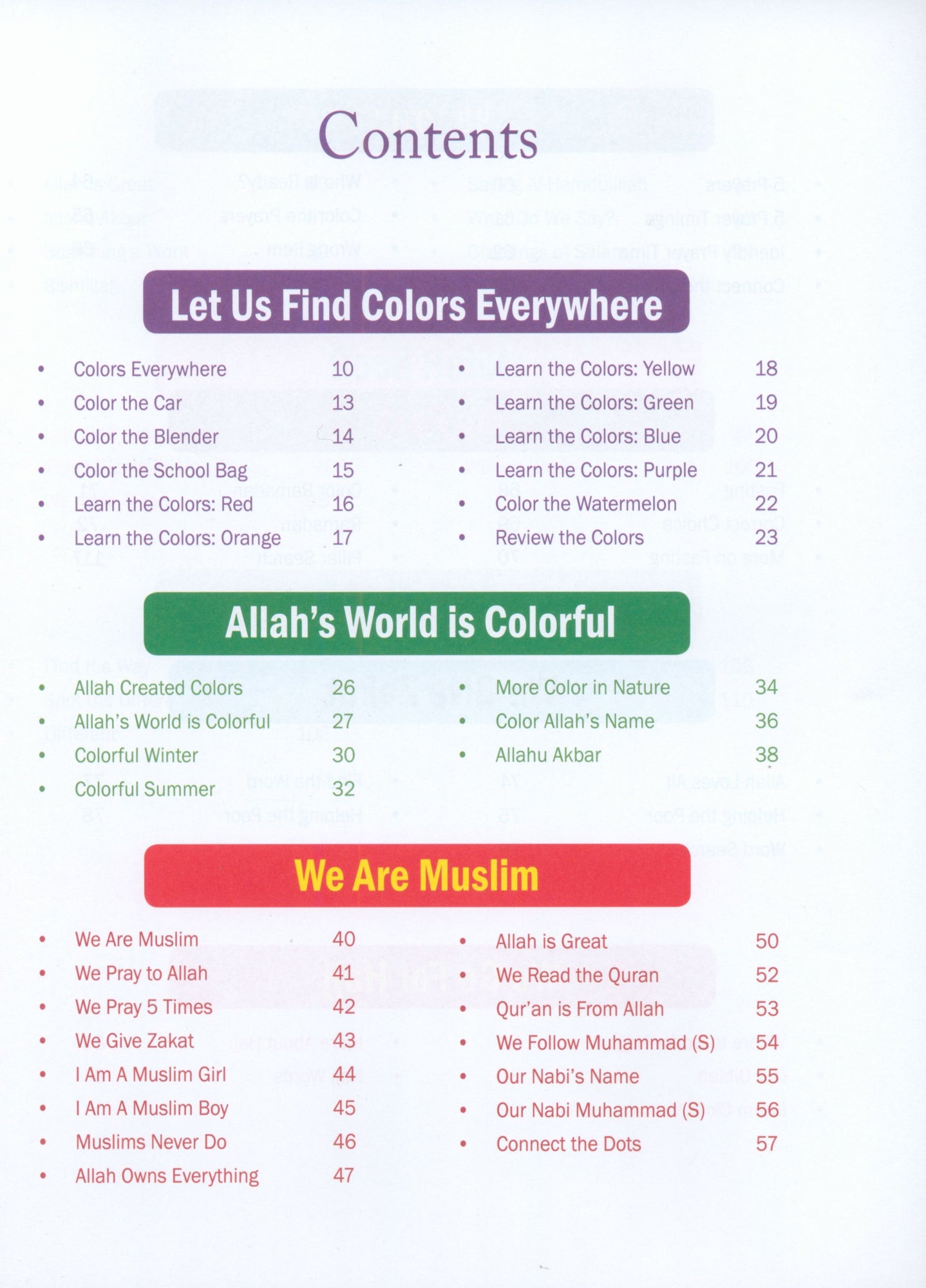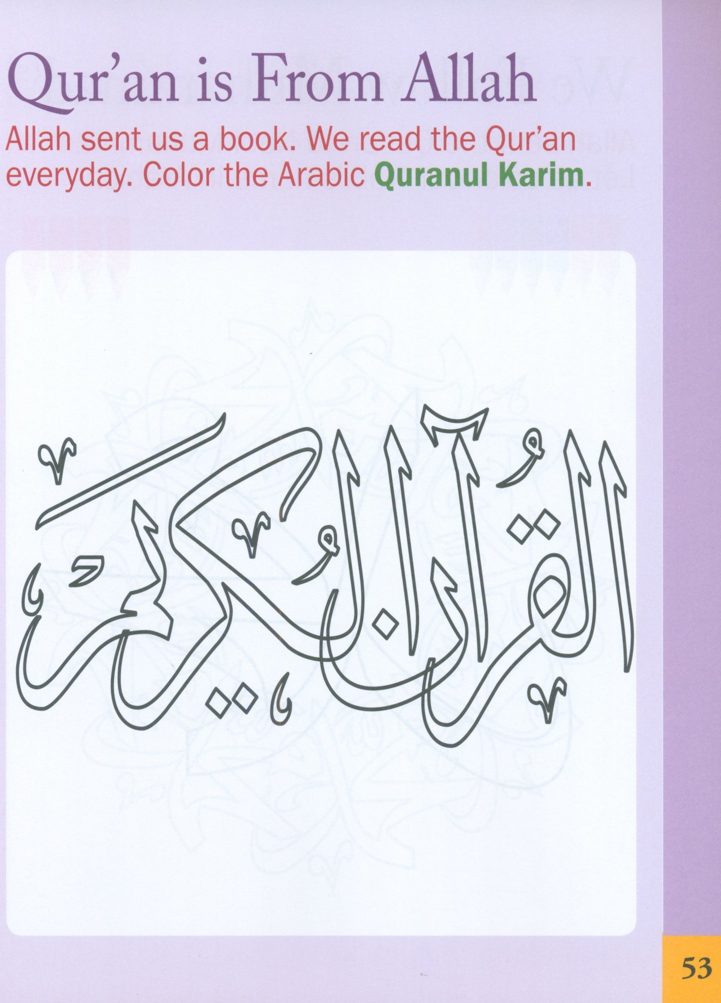 The Islamic Studies Junior Kindergarten book is intended for children ages 4–5—who are transitioning from being a toddler to a preschooler. There is a lot to expect as the transition happens. At this tender age, children learn a lot but also learn through fun activities. The goal of Junior Kindergarten is to encourage and build good feelings about school and learning. Students begin with a very basic curriculum. The book emphasizes the most important academic activity—developing literacy through reading and writing.