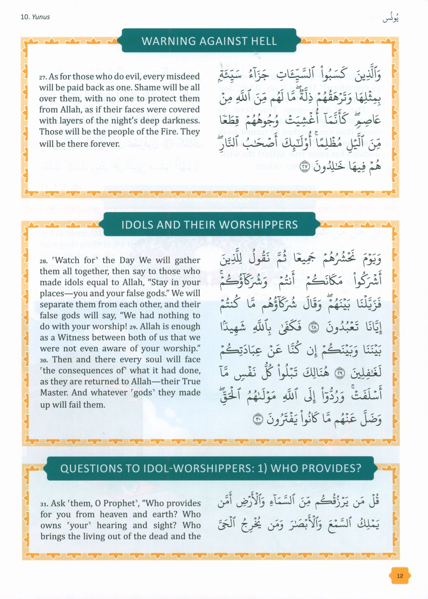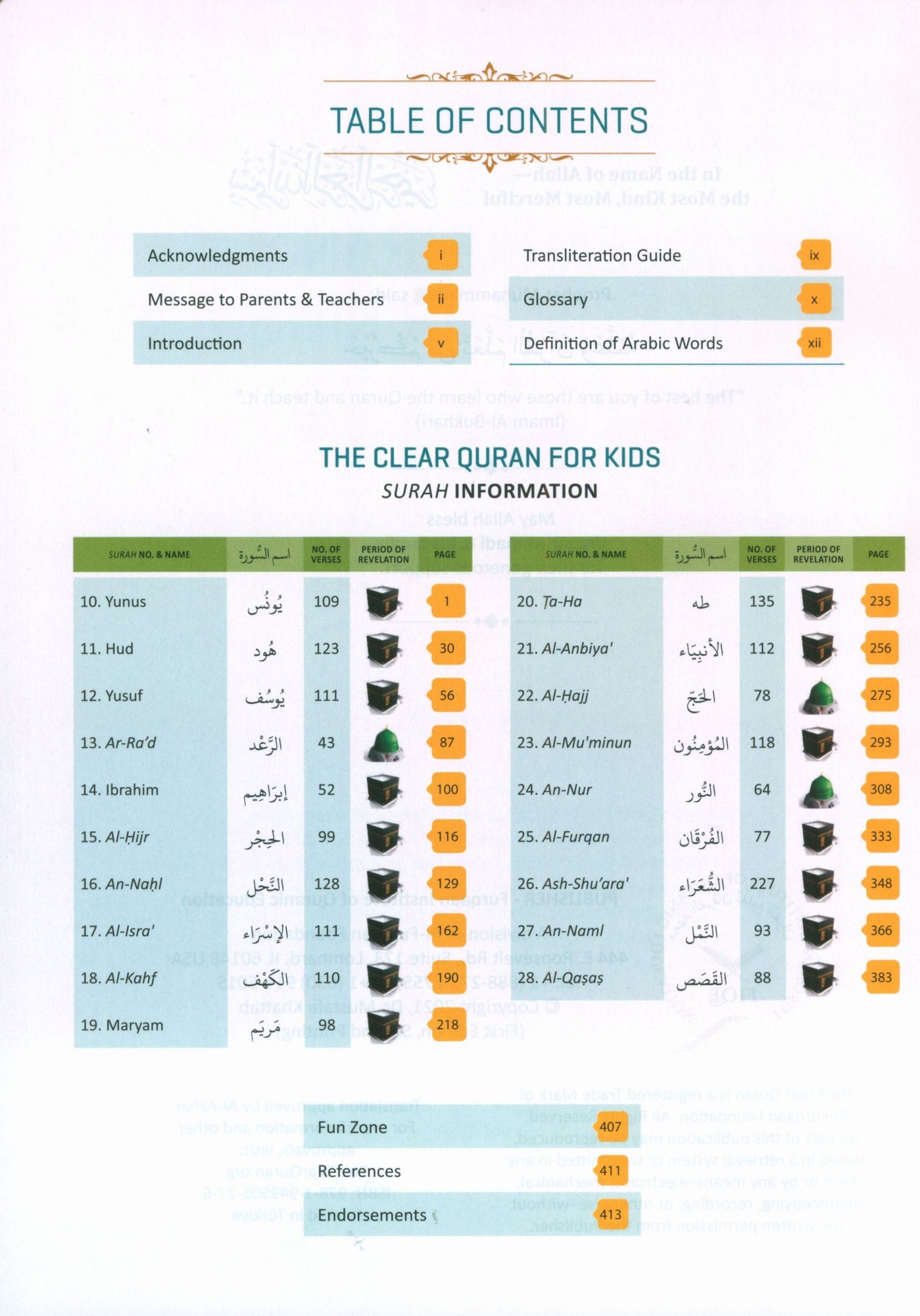 "What makes this translation unique is that it has been edited by kids, for kids. I have worked diligently with a team of students (mostly grade 2-5) to identify difficult words and replace them with easier ones that carry the same meaning. As for the words we couldn’t replace, they are explained in the glossary, along with the Arabic terms used in this book. With the help of qualified Islamic and public school teachers and professional editors, we made sure that the translation is accurate and accessible."