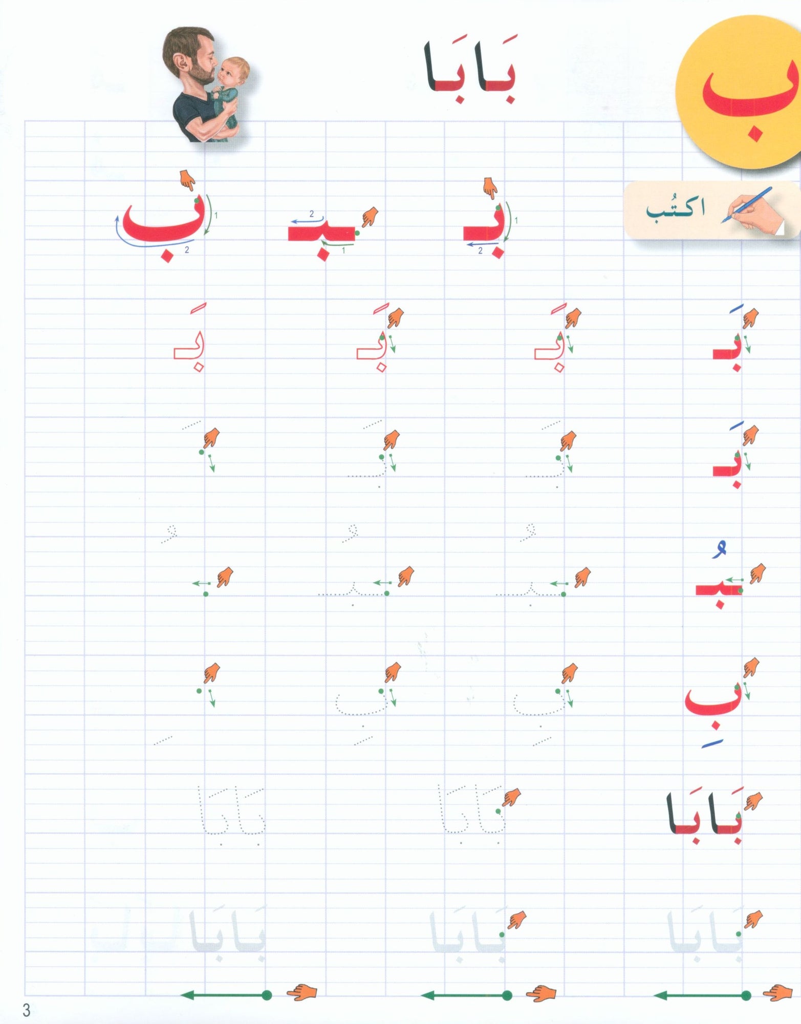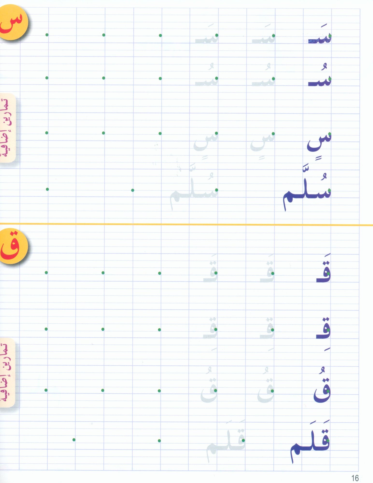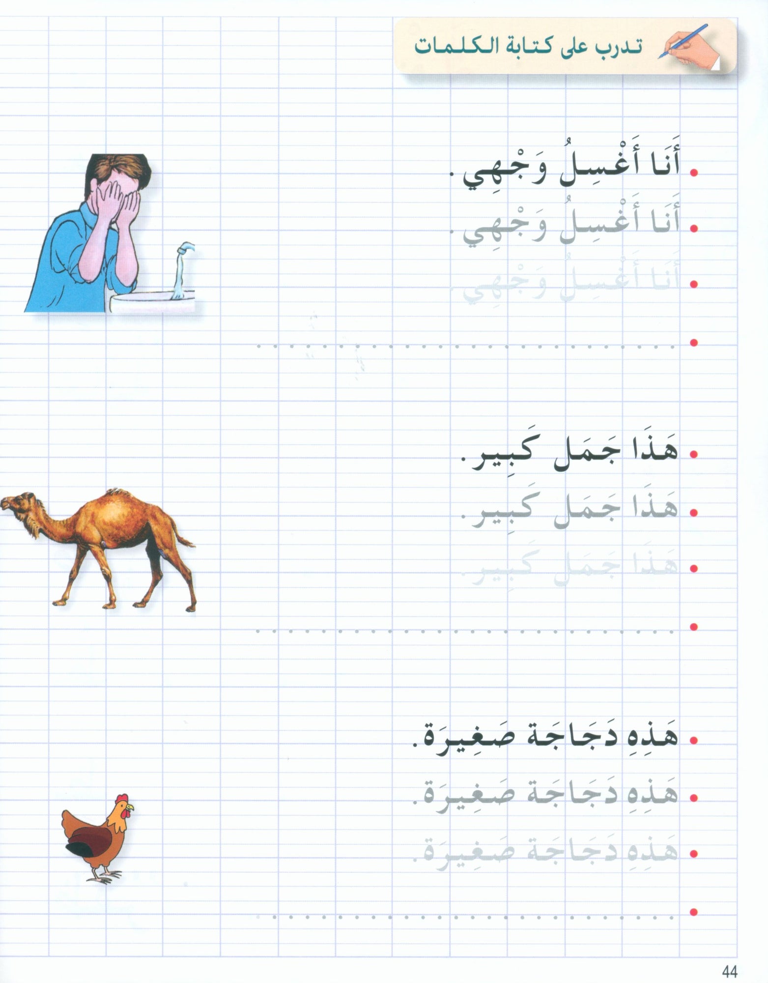 Handwriting Book: Students practice writing Arabic letters, words, and then expressions.