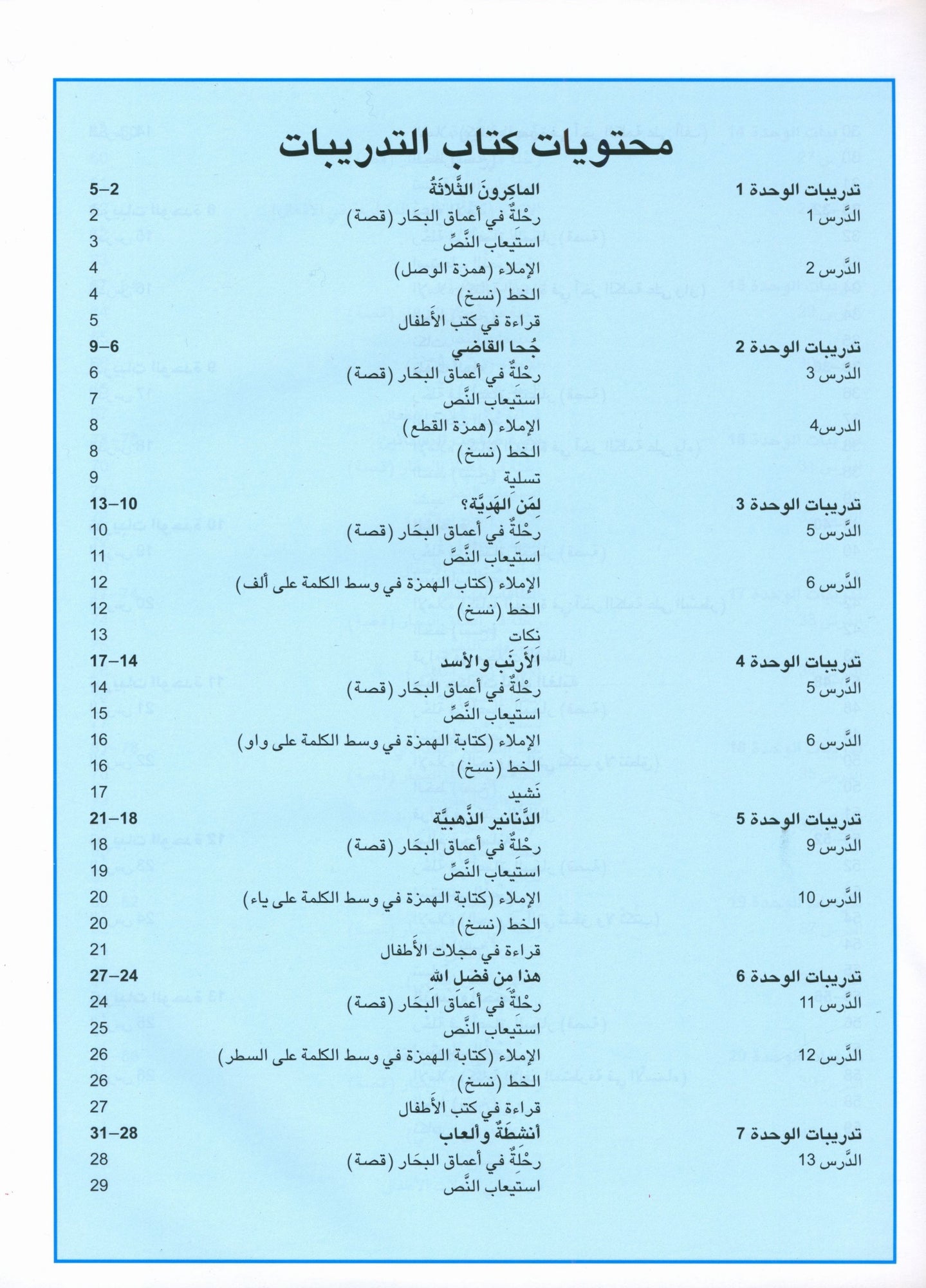 لكل مستوى ثلاثة كتب: الأول كتاب الطالب، والثاني كتاب النشاط، والثالث كتاب المعلمة