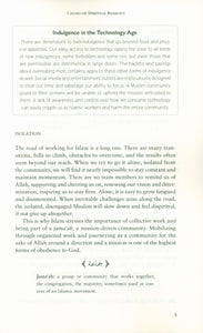 Roadblocks is the first volume in a series addressing the spiritual challenges facing Islamic workers. Whether you call yourself an activist, an Islamic worker, a community volunteer, or a caller to God, working for islam is one of the most blessed occupations in this life, but it is also a challenging path with many roadblocks lying in wait. Travelers upon a road must prepare for the journey, equipping themselves and learning about the roadblocks they will encounter along the way. Working for Islam is the most blessed occupation we can take up in this life, but it is also a difficult road with forces scheming to drive us off course. Many roadblocks lie in wait, some the result of devilish schemes and others contrived by our own mischief and misdeeds. These roadblocks force weak and ill-prepared travelers to the wayside, often causing them to abandon Islamic work entirely. Roadblocks is an in-depth exploration of the spiritual diseases most commonly afflicting Islamic workers in their journey, roadblocks from without and within. Each chapter dissects the causes and symptoms of a specific spiritual disease, the effects on both the individual and the trajectory of Islamic work, and finally, equips the reader with a series of solutions and preventative measures.