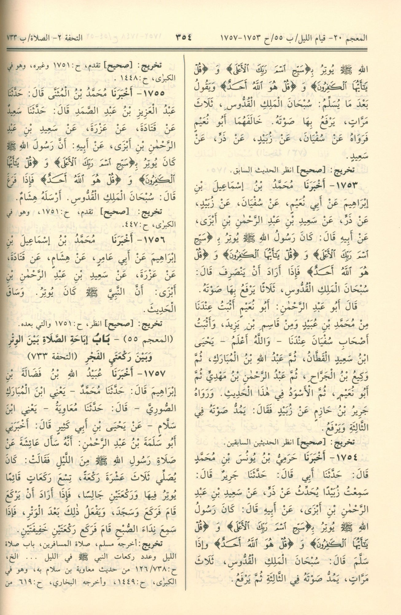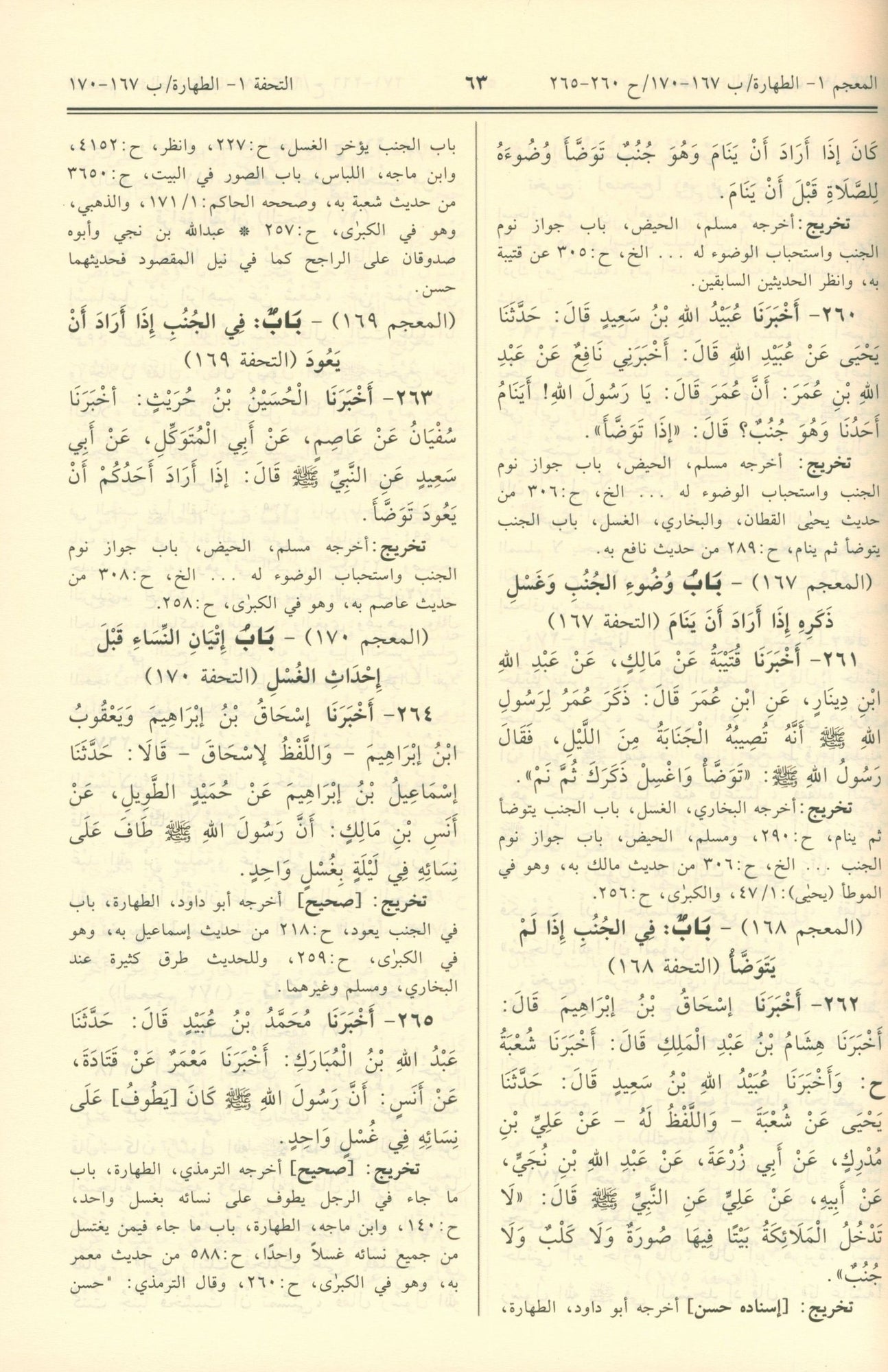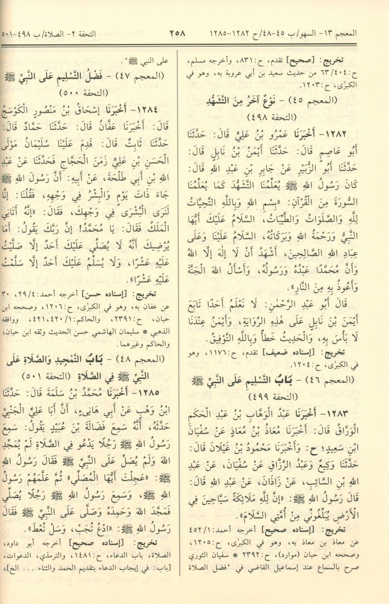 اخترنا للكتب والأبواب، الأرقام التي ذكرت لها في المعجم المفهرس، وتحفة الأشراف، ووضعنا رقم المعجم إلى اليمين، ورقم التحفة إلى اليسار. وكذلك فعلنا في رؤوس الصفحات مع وضع أرقام أحاديث تلك الصفحة
